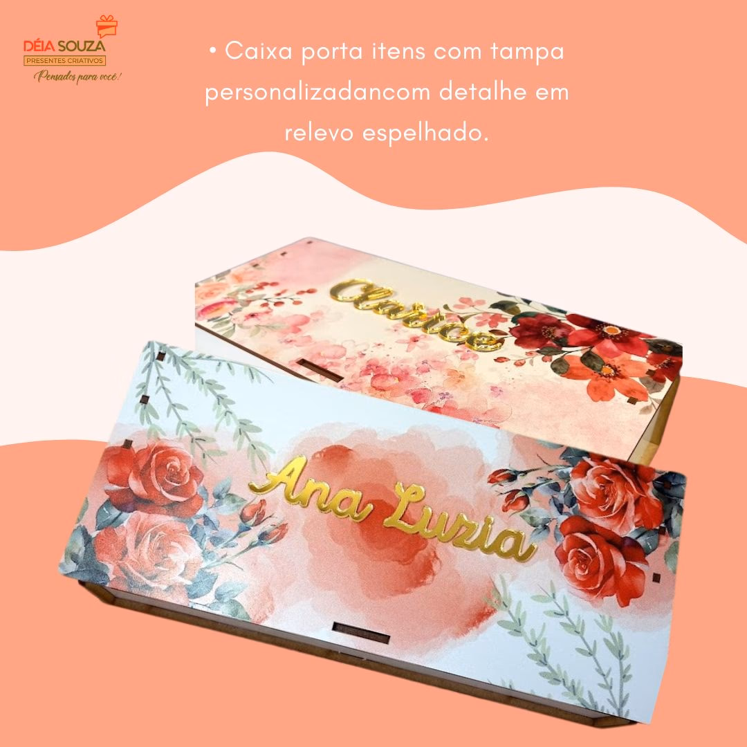 Caixa retangular Mulher Uma peça linda e personalizada. Perfeita para decorar e guardar objetos. Tampa personalizada através de impressão de alta qualidade direto no MDF e nome ou palavra em acrilico espelhado em relevo Medida 10,5 de largura x 23cm de comprimento x 5,5 de altura ****PRAZOS: Após a confirmação do pedido 2 dias uteis para a arte e produção em até 8 dias úteis. Após pronto informaremos para retirada ou envio se selecionado na compra***