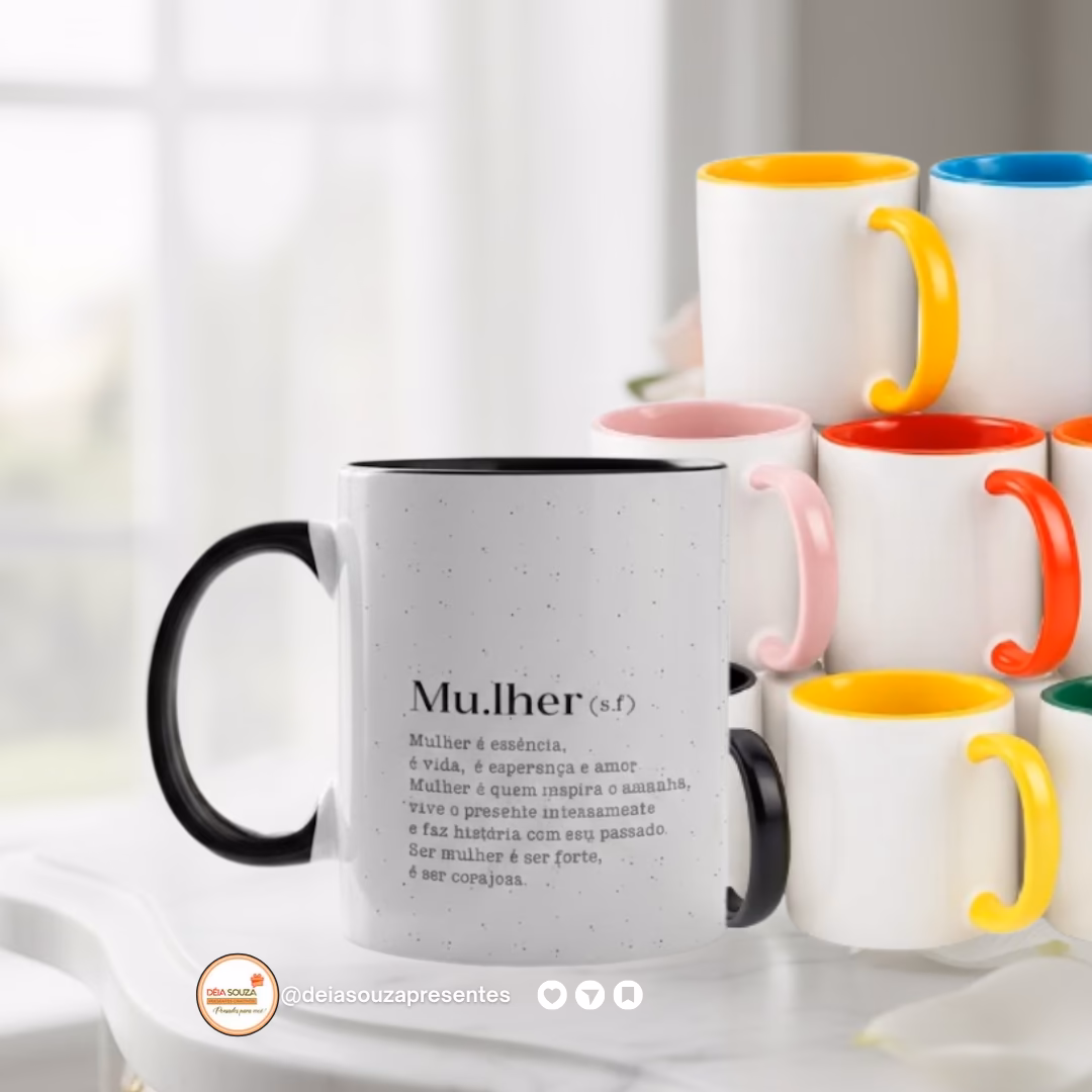 Caneca alça e interior Cores Personalizada. IMPORTANTE: Descrever no campo qual de caneca deseja: Vermelha, preta, amarela, azul claro, rosa claro, lilás ou verde. Arte: Você deve descrecer no campo abaixo (campo obrigatório) o que deseja n...