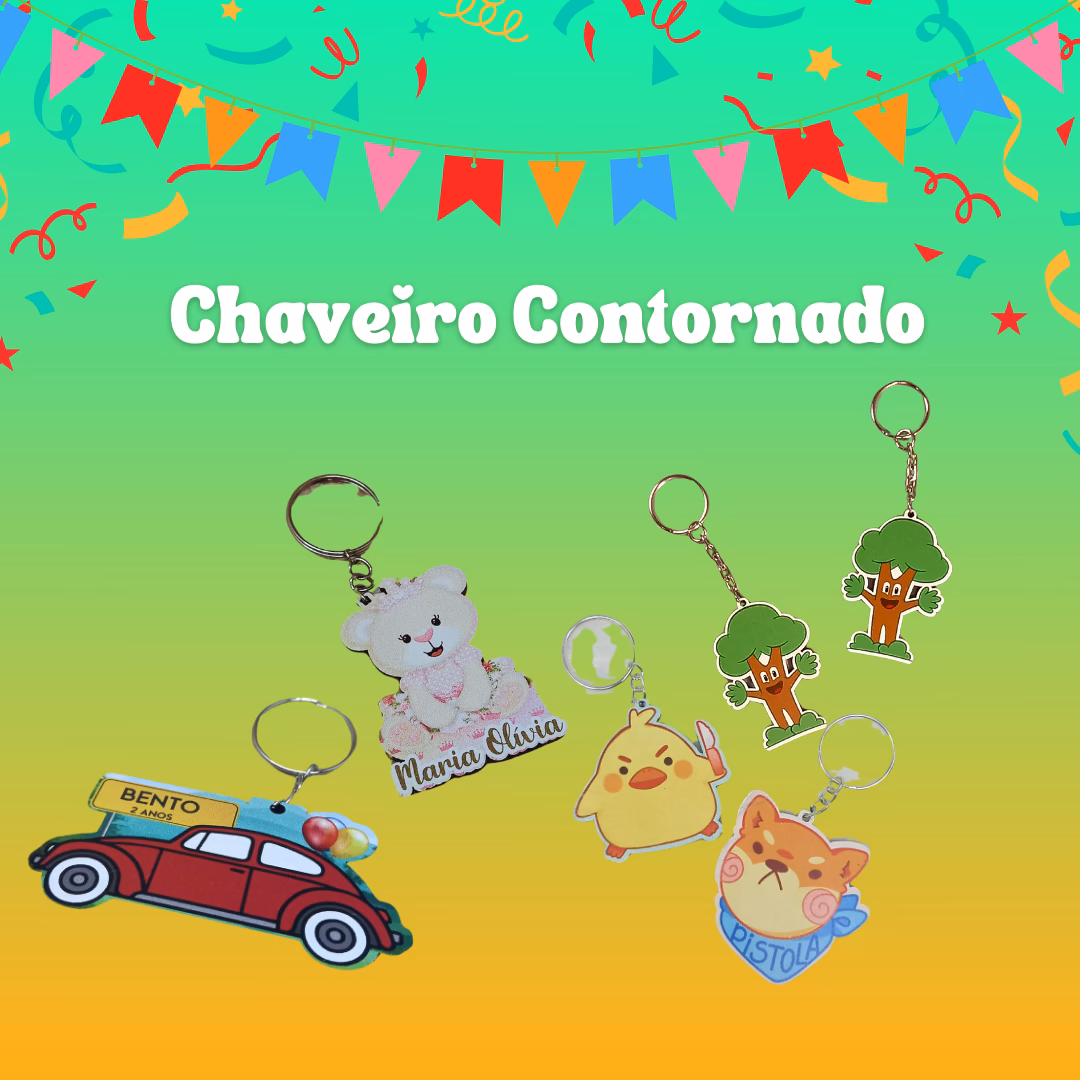 Chaveiro Contornado Produzido em MDF com impressão Ultra Violeta direto no MDF (não é adesivo). Embalado individualmente em saco celofane com fechamento adesivo. Medida das peças 5cm de altura e largura proporcional. Tema do produto conform...
