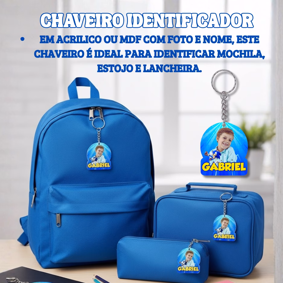 Chaveiro Identificador Personalizado com foto, nome e 1 personagem. Ideal para identificar mochila, estojo e lancheira. ****PRAZOS: Após a confirmação do pedido 2 dias uteis para a arte e produção em até 8 dias úteis. Após pronto informarem...