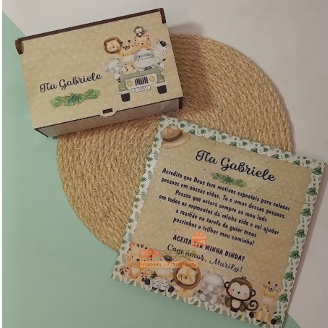 Kits de caixas de MDF com tampa personalizada com impressão ultra violeta na parte externa e adesivada na parte interna com quebra cabeça MDF personalizado com impressão ultra violeta