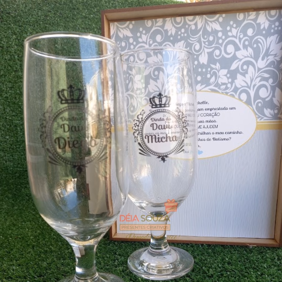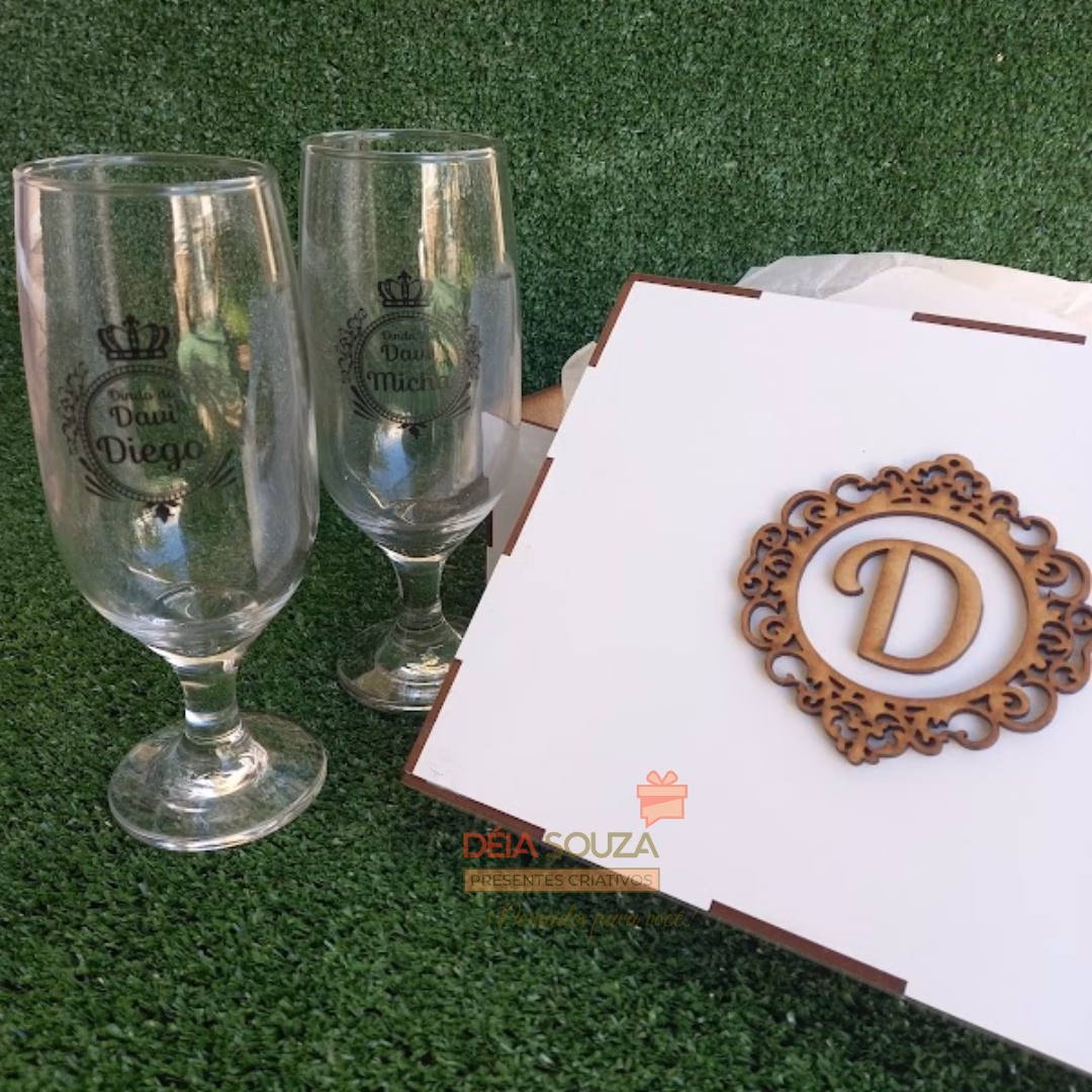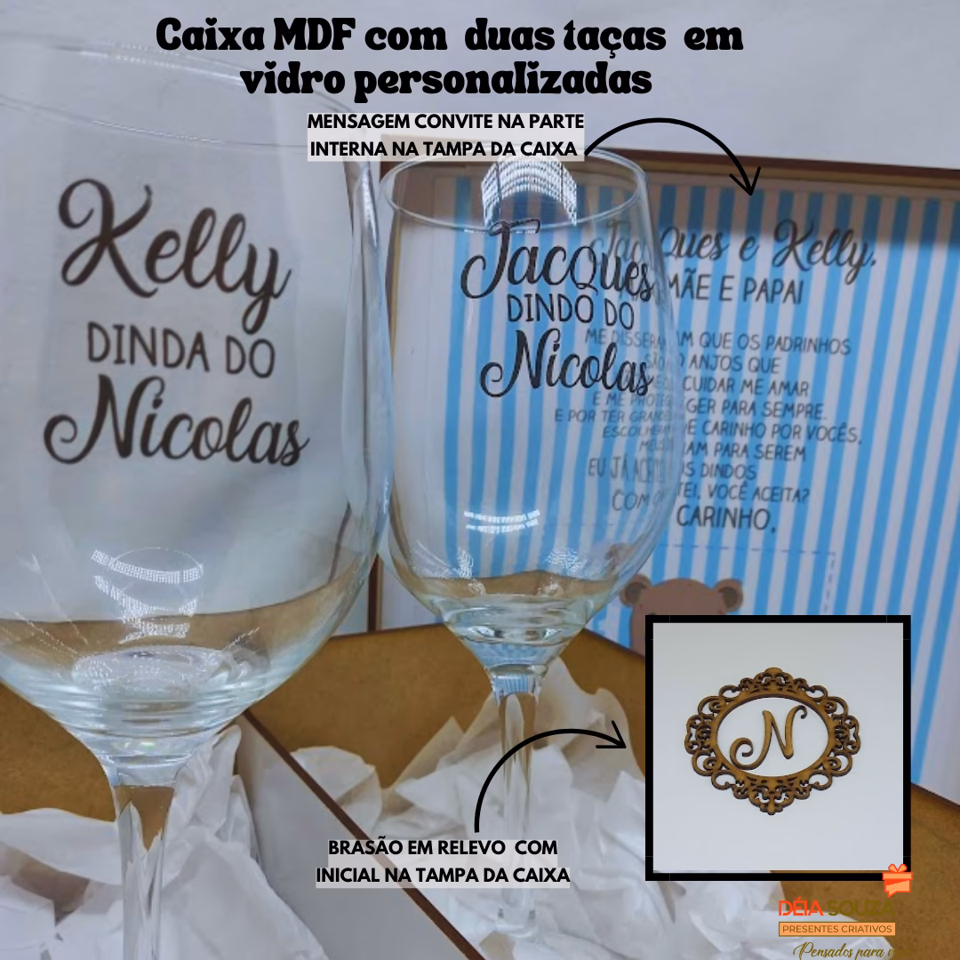 Caixa de MDF personalizada com 2 taças de vidro personalizada