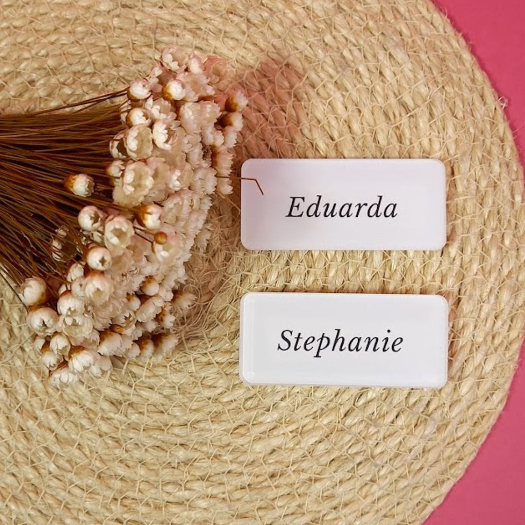 Crachá Magnético em Acrílico Impresso Produzido em acrílico de 3mm com impressão ultra violeta de alta durabilidade Acompanha magnético que possui 2 fortes ímãs de neodímio e uma contra-chapa, possibilitando a fixação dos crachás na roupa s...