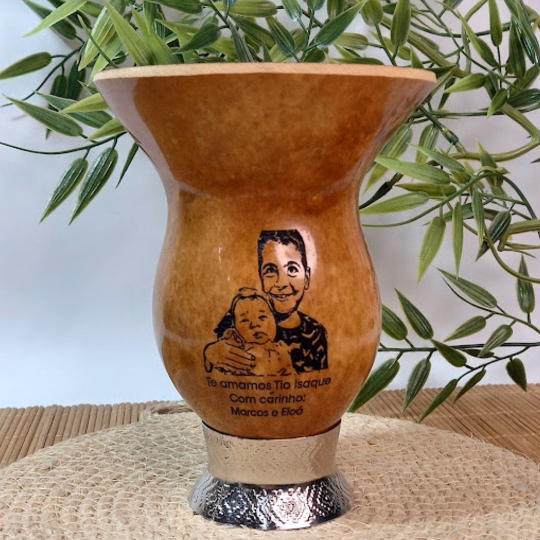 Cuia de Porongo Cuia de Porongo com pé metálico Personalizado através de gravação laser podendo ser frase, logo ou foto Gravação um ou dois lados Escolha o modelo e personalize (entre em contato via whats e solicite fotos para a escolha da...