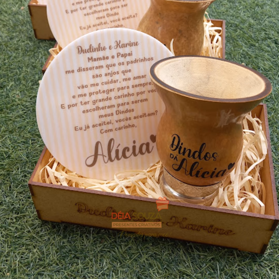 Quer convidar aquela pessoa especial para ser Madrinha ou Padrinho do seu filho ou filha e eles amam aquele chimarrão? Então este é o convite perfeito! Acompanha 1 cuida personalizada frente e verso com nome ou frase, 1 vira erva personaliz...
