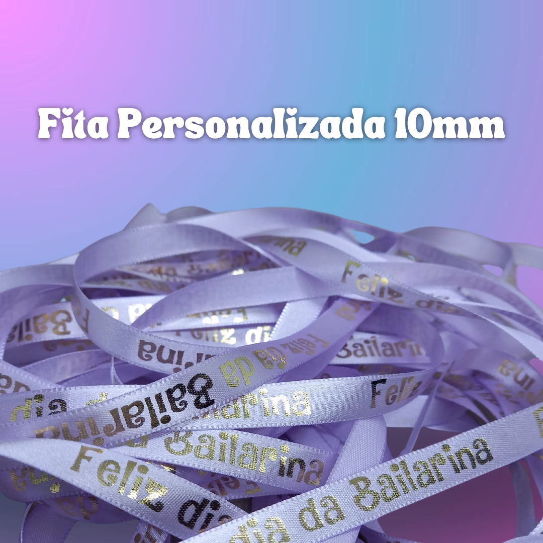 Fita personalizada 10mm Fita de cetim com personalização em prata, dourado ou preto Cores sob consulta Medida espessura de 10mm Personalize com sua marca ou tema da sua festa Vendido em rolo fechado de 50mt Prazo pode variar de 7 á 15 dias