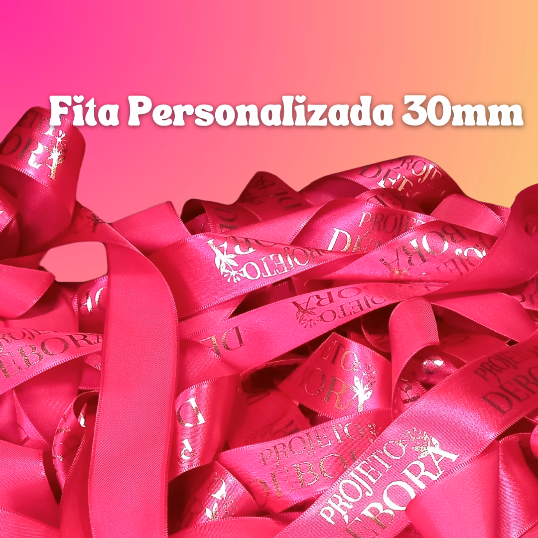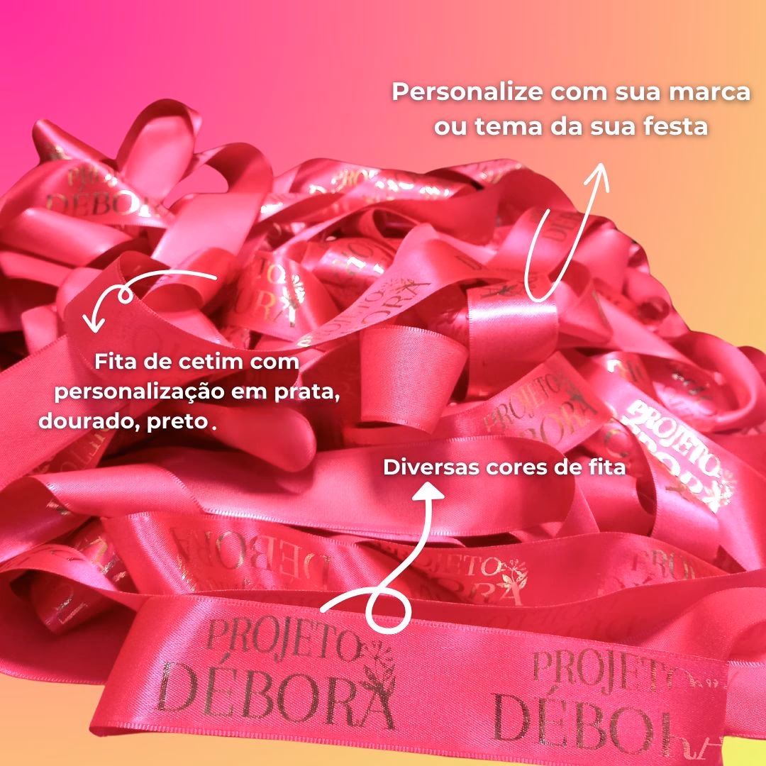 Fita personalizada 30mm Fita de cetim com personalização em prata, dourado, preto Cores sob consulta Medida espessura de 30mm Personalize com sua marca ou tema da sua festa Vendido em rolo fechado de 50mt Prazo pode variar de 7 á 15 dias