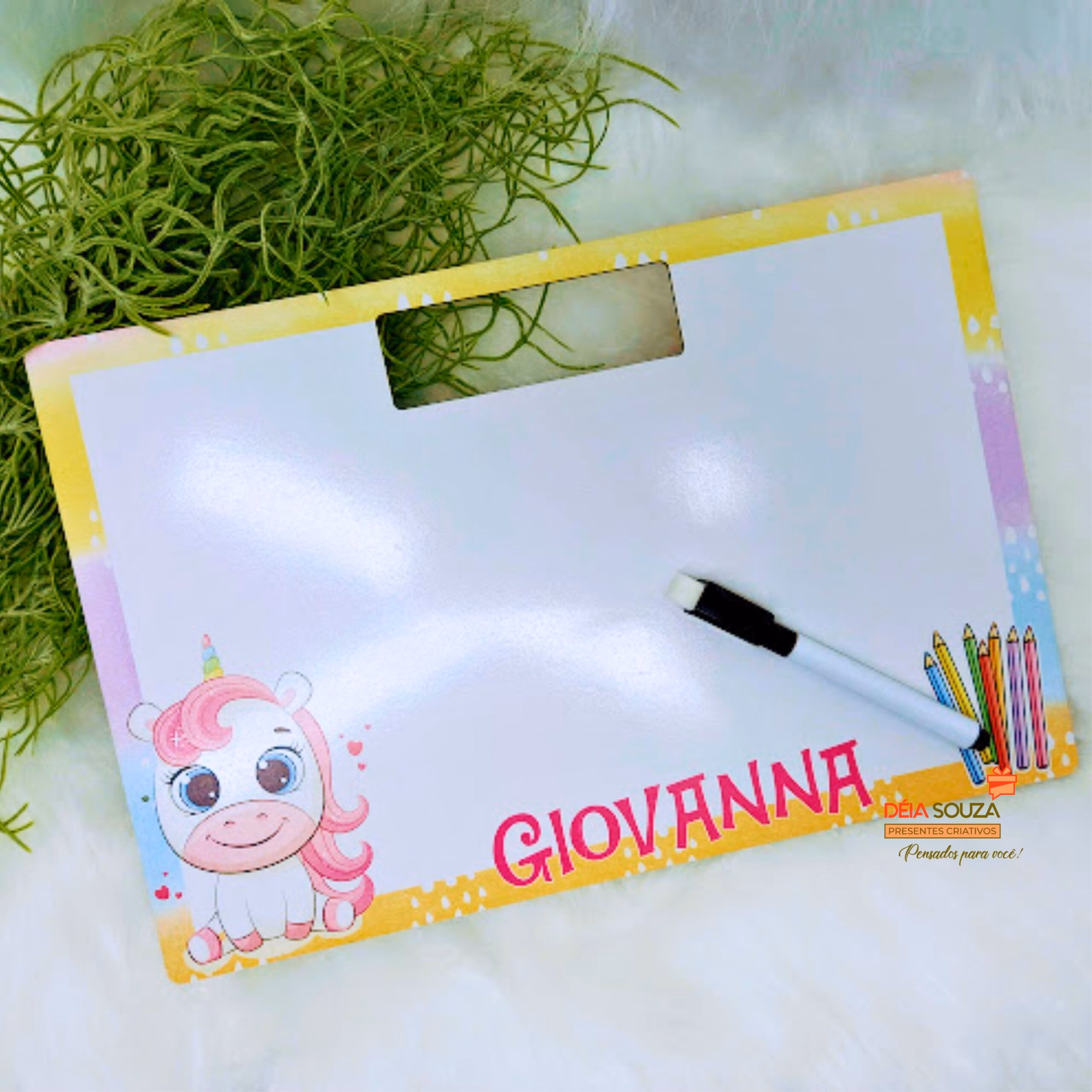 Lousa Mágica Produzido em MDF com impressão Ultra Violeta direto no MDF. Acompanha caneta apagador. Embalado individualmente em saco celofane. Cada embalagem acompanha fita personalizada com nome do aniversariante Medida 20×30 ou 15×20 (Voc...