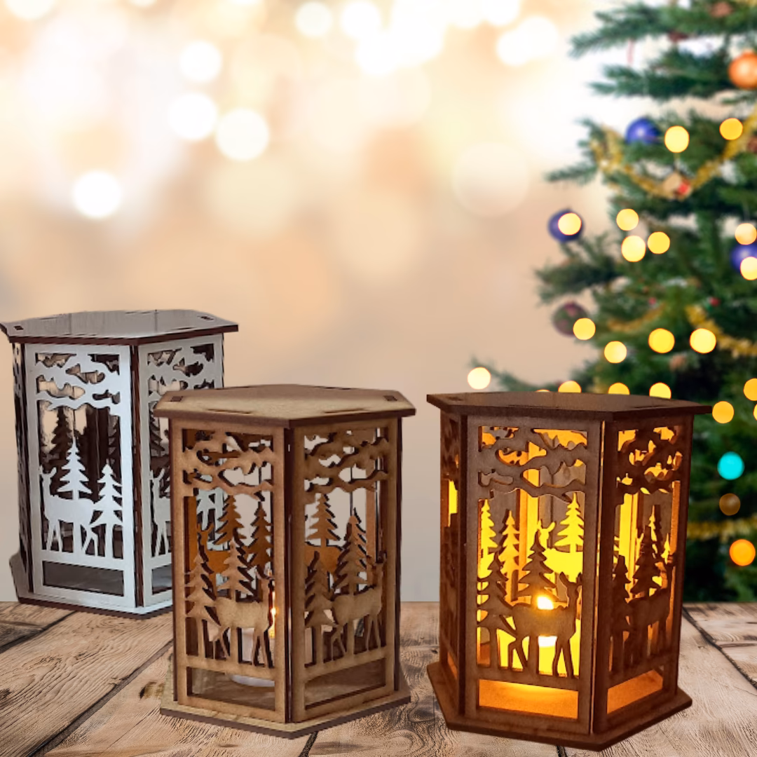 Perfeito para decorar e encher sua casa com o clima natalino Produzido em MDF Cru ou Branco e acompanha vela a pilha. Medidas: 10x10cm