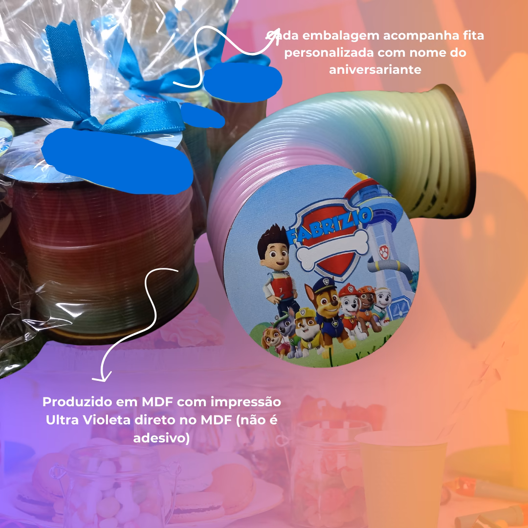 Mola Maluca com base personalizada Produzido em MDF com impressão Ultra Violeta direto no MDF (não é adesivo). Embalado individualmente em saco celofane. Cada embalagem acompanha fita personalizada com nome do aniversariante. Tema do produt...