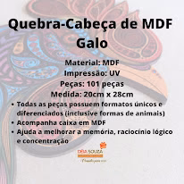 Quebra-cabeça produzido com ótimo acabamento e corte perfeito, produzido com madeira ecológica prensada em 3mm que não deixa lascas como nos compensados com impressão direto na madeira de alta qualidade. Além dos amantes de quebra-cabeças, nossos quebra-cabeças são comprados por pessoas criativas, amantes de jogos de tabuleiro, pessoas que gostam de fazer tarefas simples com as mãos Composição do produto: Quebra cabeça de MDF Caixa de MDFPreço atual