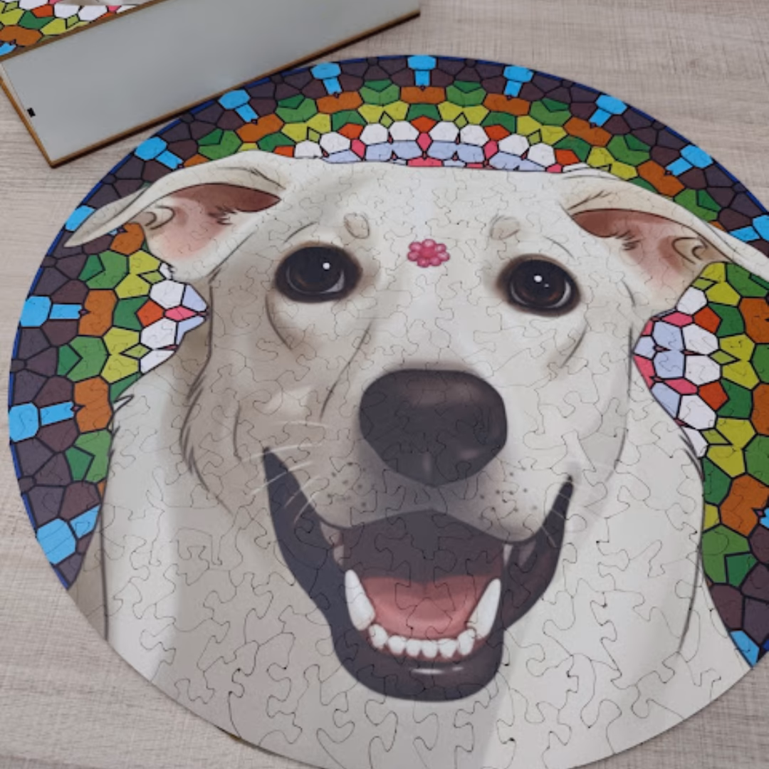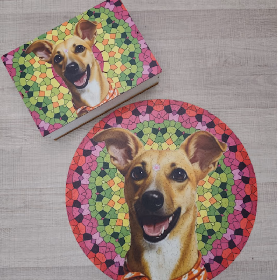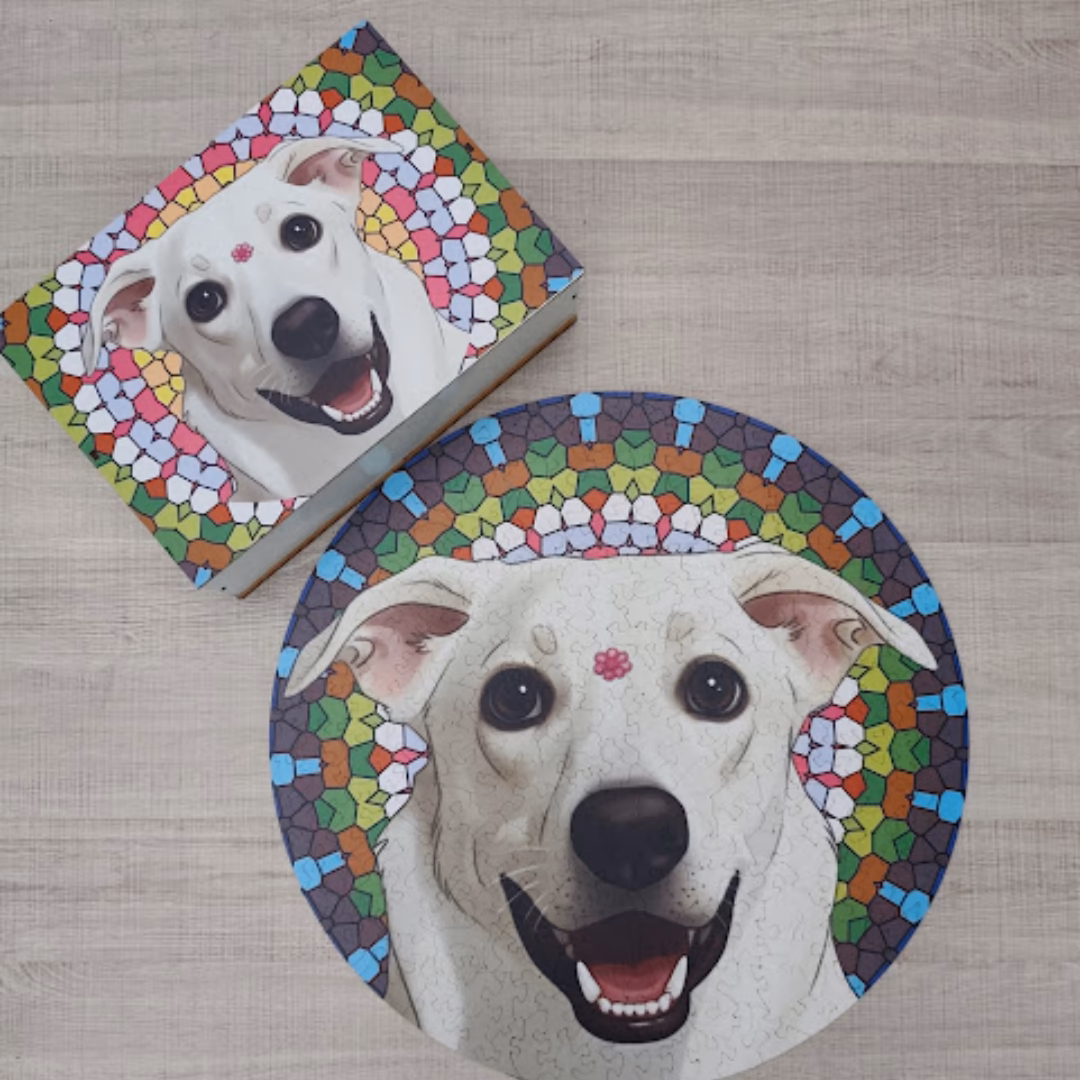 Quebra Cabeça Love Pet Medidas: 45 de diâmetro 257 peças, sendo formatos irregulares, formato de cachorro, ossinho e patinha Produzido em MDF, com impressão de otima qualidade permanente direto na superficie resistente a luz Todas as peças...
