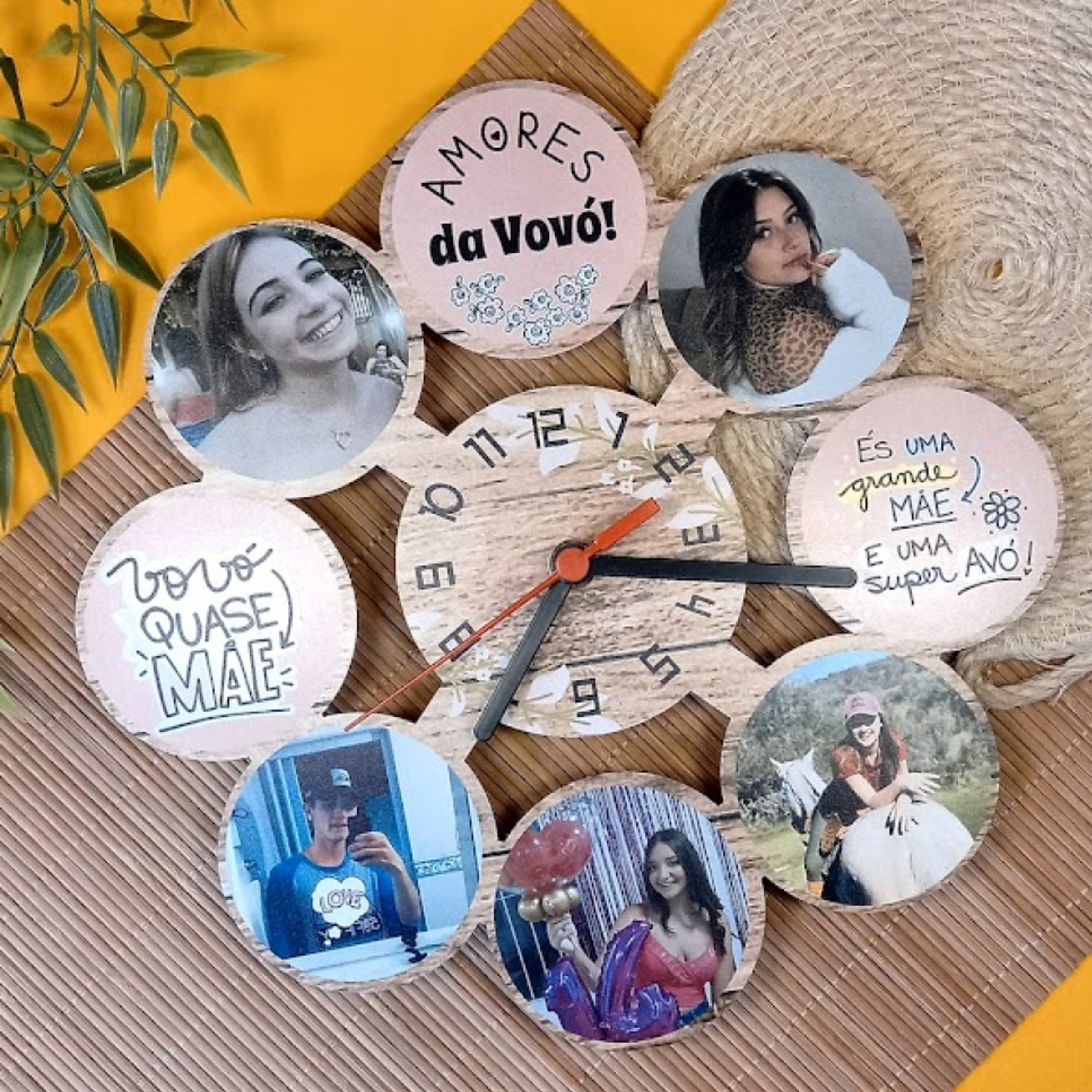 Relógio redondo 8 fotos! Ele é simplesmente lindo. Relógio em MDF com impressão de alta qualidade. Na medida de 27cmx27cm você pode personalizar com as suas fotos preferidas e ainda decorar Acompanha 2 pilhas